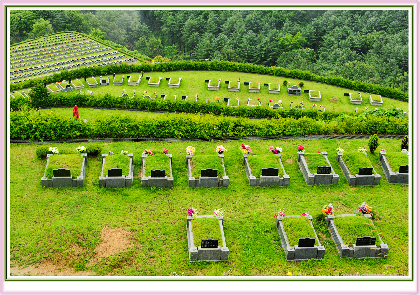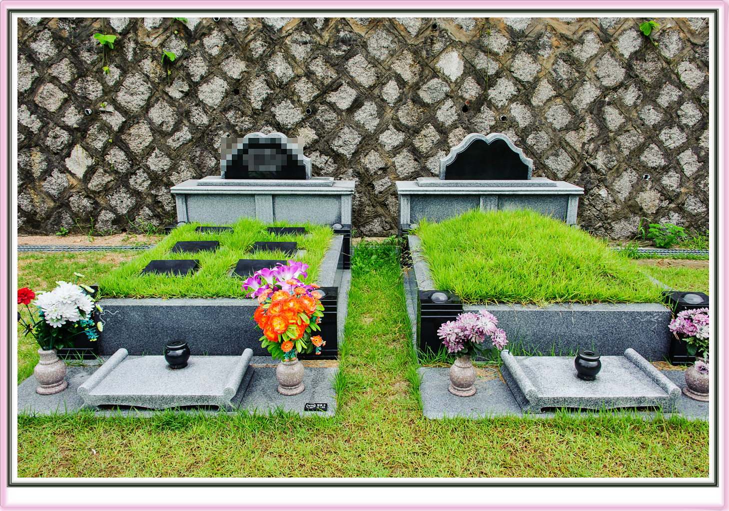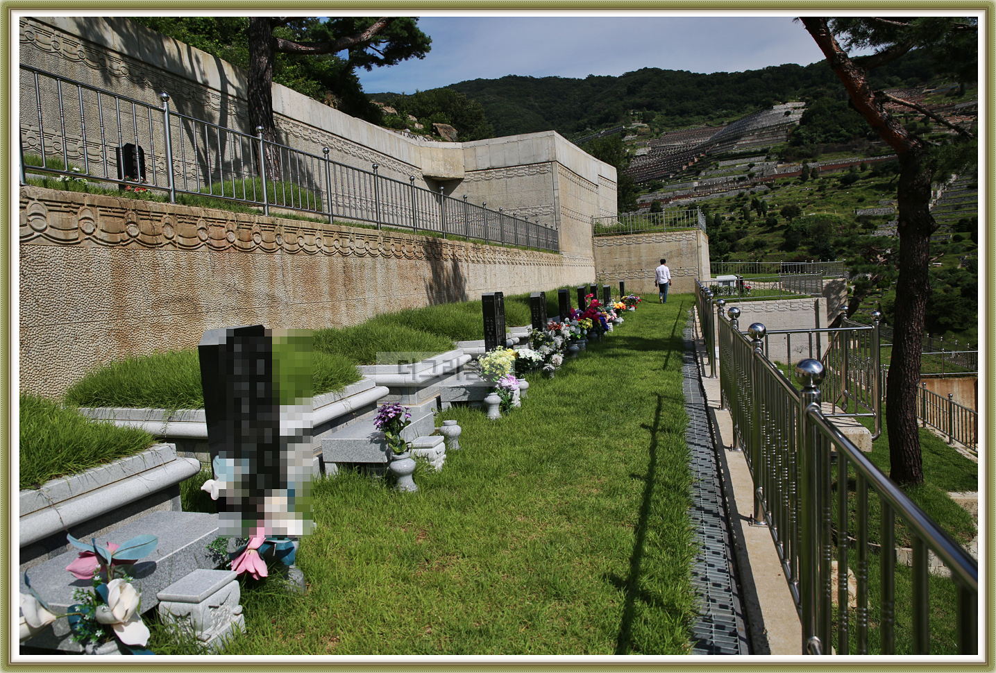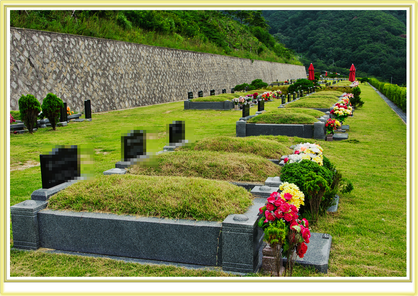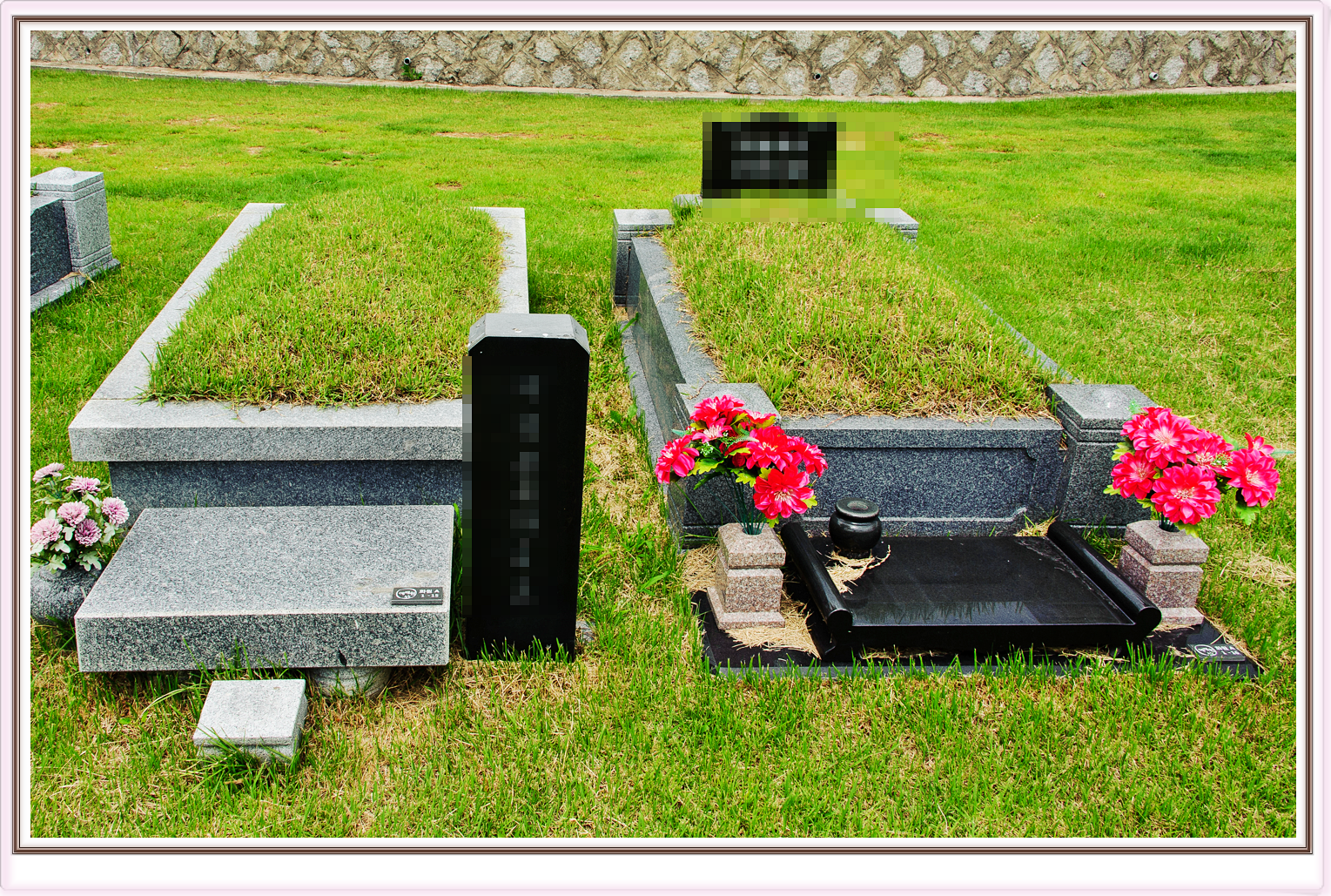 사진처럼 봉분만있기보단,주변에 묘테를 두르며 이는 훼손을 막고 품격을 높이므로 지역별 차이는 있지만 1~4테 종류중에 택할 수 있으세요.